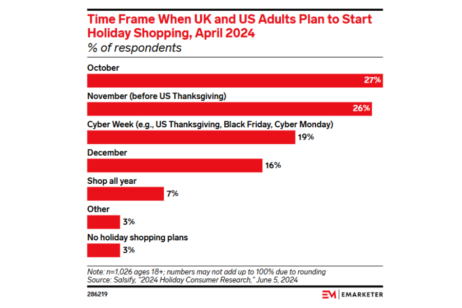The holiday shopping window is shorter this year, yet the outlook is bright. Research shows that 27% of consumers in the US and UK plan to begin their holiday purchases as early as October. Rising inflation has encouraged many buyers to spread spending across a longer period, making October a prime time for early activity.
