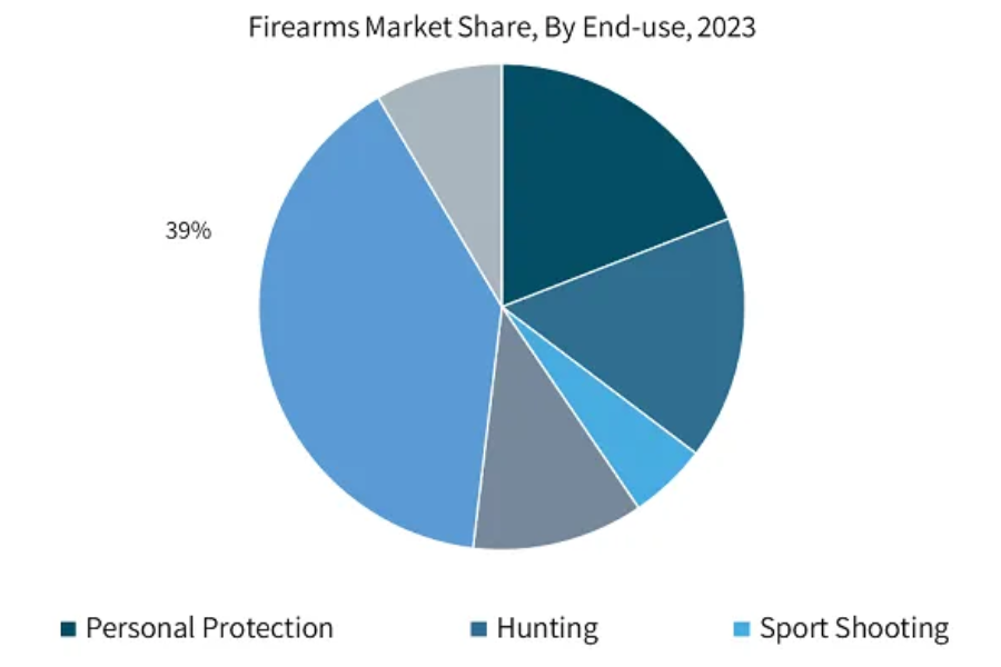 Handguns made up about 29% of the market share in 2023, driven by personal safety concerns and legal factors like concealed carry permits.Sporting and recreational activities contribute to the steady demand for handguns.