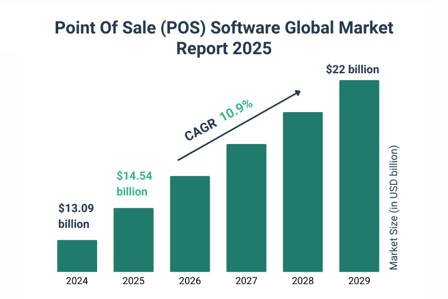 The POS software market continues to expand, growing from $13.09 billion in 2024 to $14.54 billion in 2025, reflecting a CAGR of 11.1%.