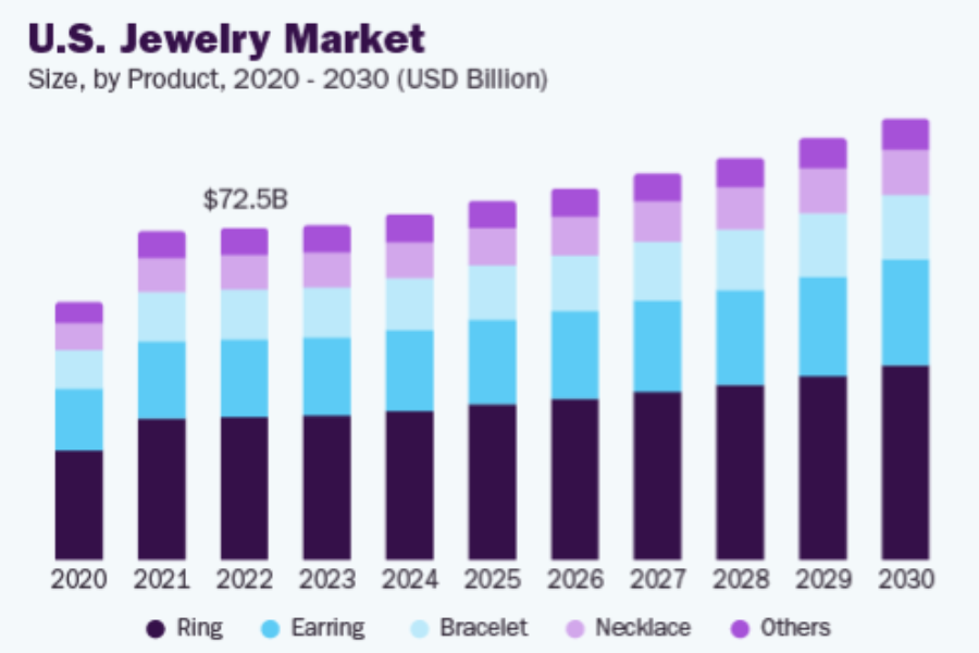 The global jewelry market, valued at USD 353.26 billion in 2023, is anticipated to witness a compound annual growth rate (CAGR) of 4.7% from 2024 to 2030.